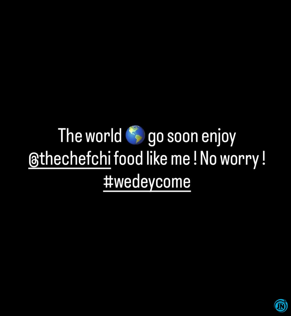 In the Instagram story, Davido showered praise on Chioma, highlighting her exceptional culinary skills and teasing that the world would soon have the chance to experience her meals firsthand. He wrote: “The world go soon enjoy Chef Chi food like me. No worry, we dey come.” This playful and affectionate message not only expressed his admiration for his wife but also served as a clear hint at an upcoming business project aimed at bringing Chef Chi’s talents to a global audience.