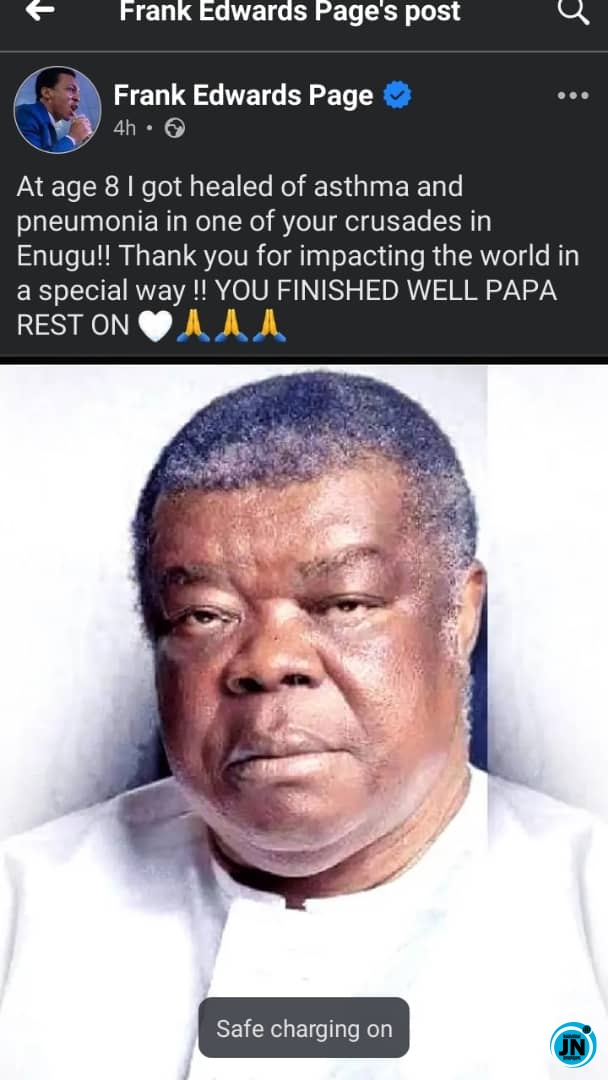 “At age 8, I got healed of asthma and pneumonia in one of your crusades in Enugu!! Thank you for impacting the world in a special way!! YOU FINISHED WELL, PAPA. REST ON 🤍🙏🙏🙏”
