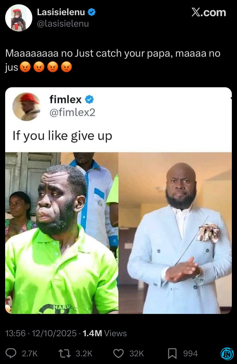 Taking to X, Lasisi Elenu reacted to the comparison with his trademark humor and a touch of irritation. In a tweet that drew further attention and engagement, he wrote: